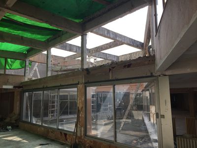 Opération de restructuration complète du bâtiment. Curage complet de l'ensemble des niveaux, dépose des réseaux et menuiseries existantes.