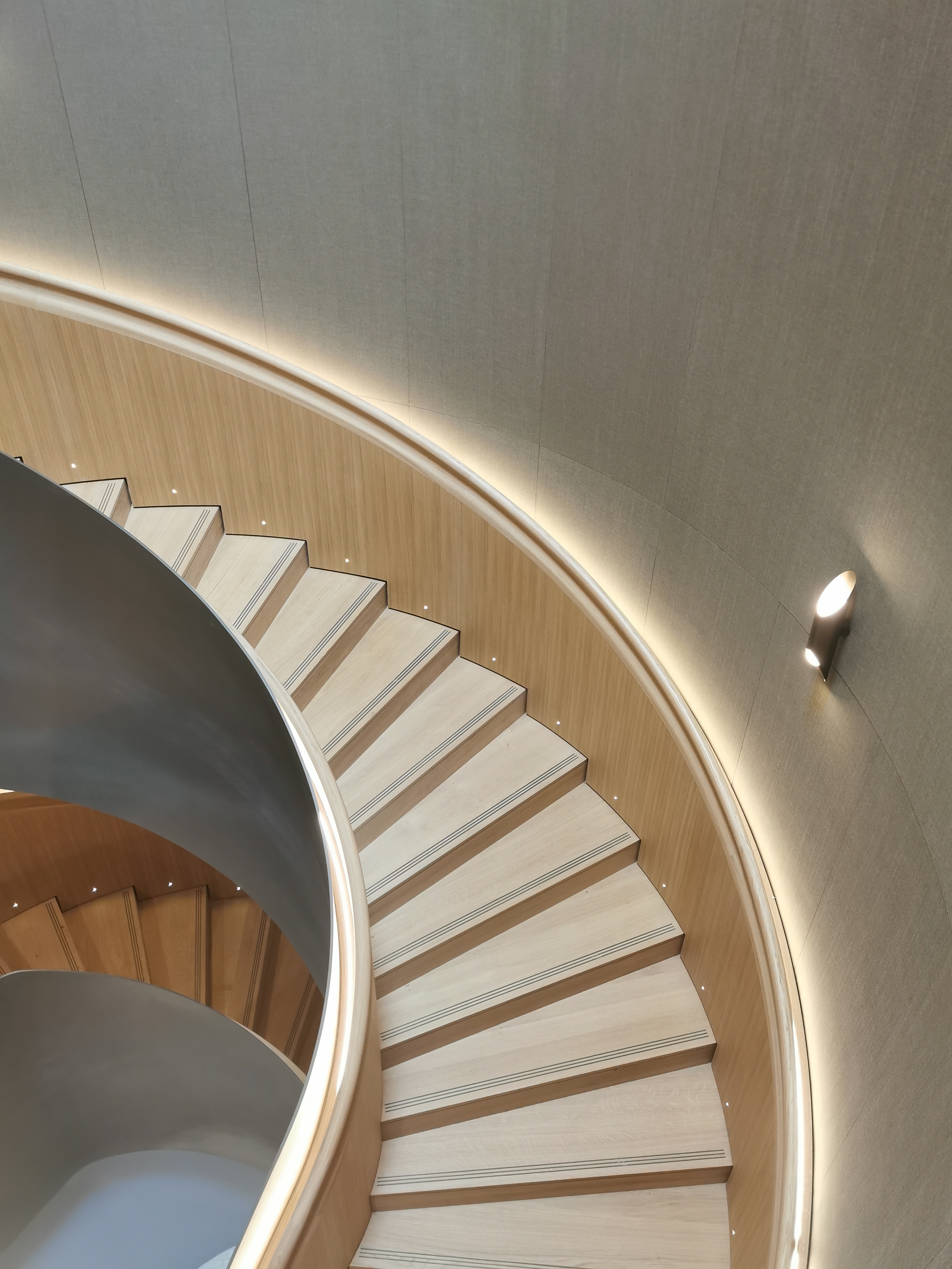 La réalisation de l'escalier a bénéficié d'une attention toute particulière. Point central du musée, ce dernier s'articule comme la colonne vertébrale du projet et en est un élément clé. Il a été dessiné sur mesure, en partenariat avec un agenceur.
